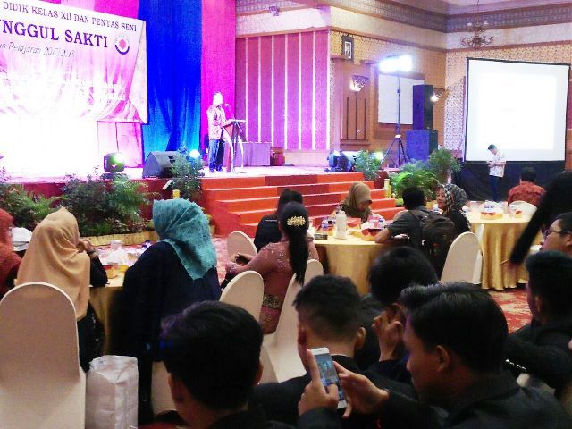 Fasha yang hadir pada undangan pelepasan siswa Unggul Sakti 2018 tersebut memberikan motivasi kepada pelajar.