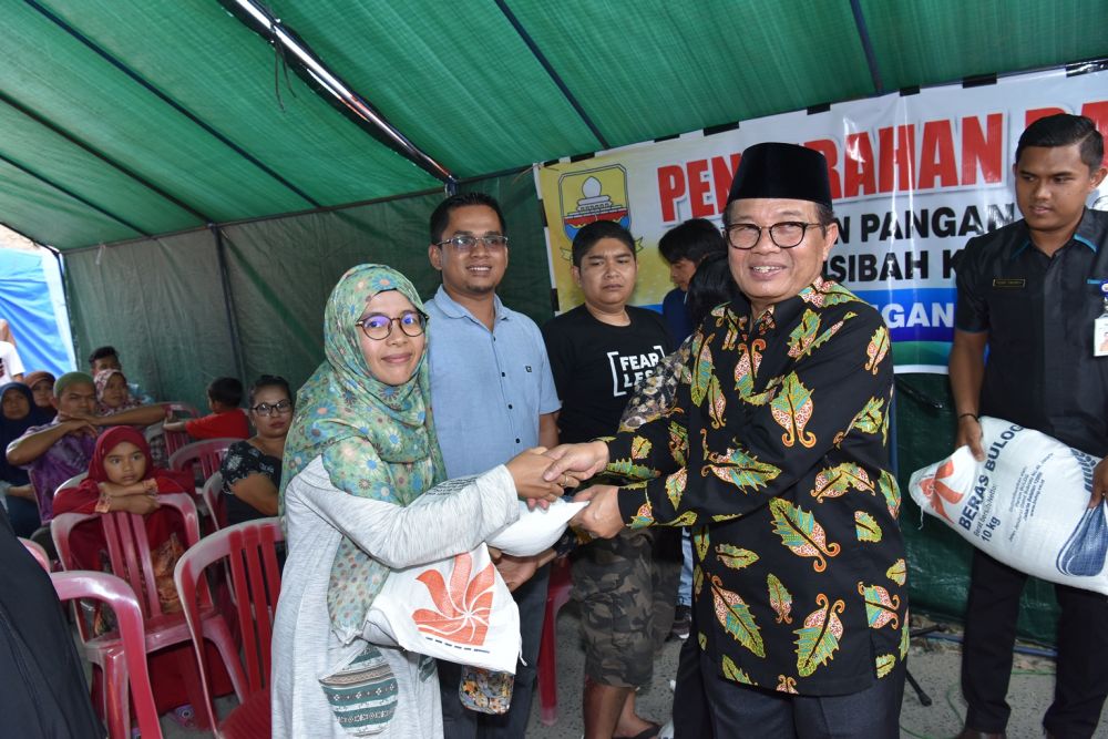 JAMBERITA.COM- Pelaksana Tugas (Plt) Gubernur Jambi, Dr.Drs.H.Fachrori Umar, M.Hum menyerahkan bantuan berupa 4.518 Kg beras dari Pemerintah Provinsi Jambi, tepatnya bantuan cadangan pangan dari Dinas Ketahanan Pangan Provinsi Jambi bagi korban musibah kebakaran Pasar Kota Sungai Penuh Kamis (10/5/18).