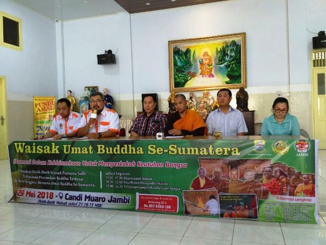 Peringatan Tri suci waisak rutin dilaksanakan setiap tahunnya oleh Vihara-Vihara dan Umat Buddha di Jambi dan di tahun ini perayaan waisak se sumatera di dukung oleh seluruh vihara- vihara yang ada di jambi termasuk organisasi kemasyarakatan yang ada di jambi, dan kegiatan ini merupakan kegiatan yang positif dan kami dapat mengklaim bahwa propinsi jambi yang pertama di lndonesia, melakukan kegiatan waisak bersama yang di dukung dan di support oleh seluruh vihara-vihara organisasi kemasyarakatan yang ada di Jambi.(*/sm)