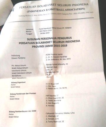 Kemas Faried Alfarelly usai kegiatan mengatakan pada hari ini sudah dilakukan penyerahan dan pembacaan SK revitilasasi kepengurusan Perbasi Provinsi Jambi.