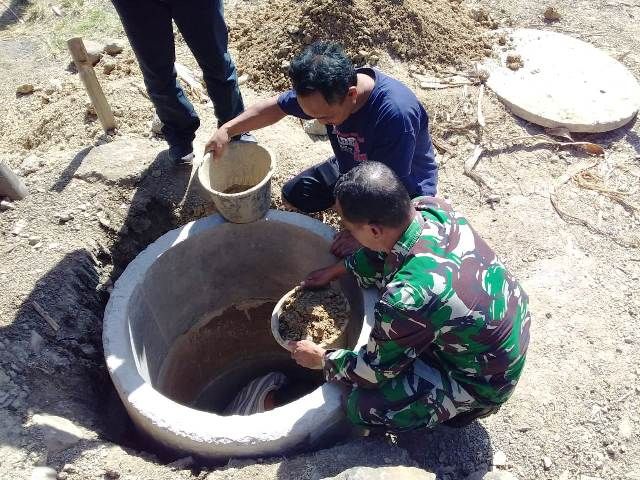 Anggota Kodim 0714/Salatiga bersama warga saling bahu membahu mengerjakan pembangunan fasilitas umum MCK untuk warga.