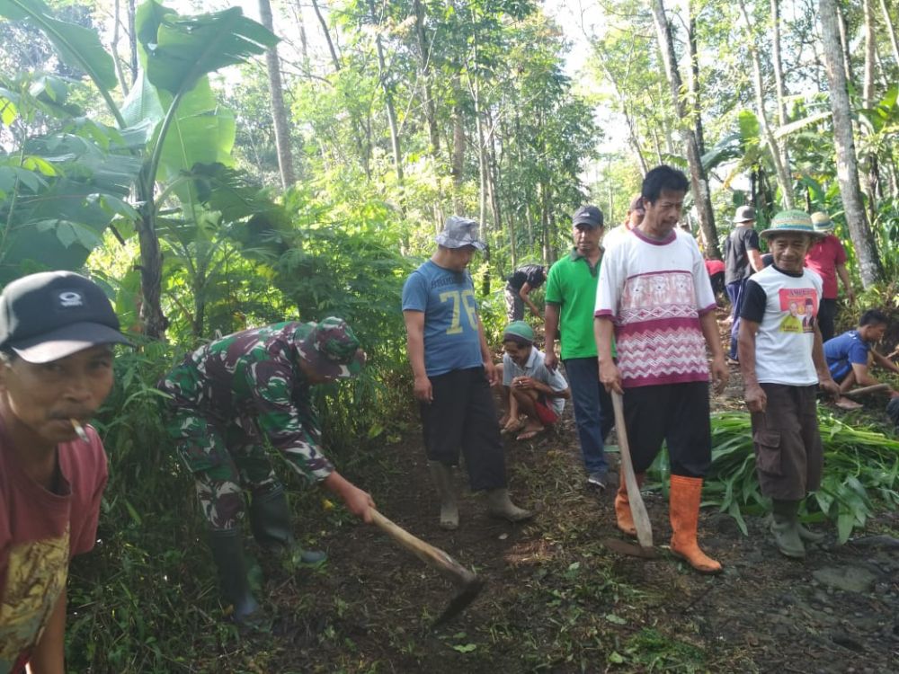 SALATIGA- Satgas TMMD Reg 102 Kodim 0714/Salatiga bersama-sama dengan warga masyarakat menggebu-gebu melaksanakan gotong-royong untuk mengerjar target kegiatan fisik maupun non fisik pra TMMD ke-102 di Desa Bonomerto Kecamatan Suruh Kabupaten Semarang.