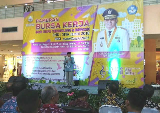JAMBERITA.COM - PLT Gubernur Jambi Fachrori Umar membuka secara resmi Pameran Bursa Kerja dan Expo Teknologi dan Inovasi SMK/SMA Jambi 2018 yang digelar di Mall WTC Batanghari, Jum'at (20/7/2018).