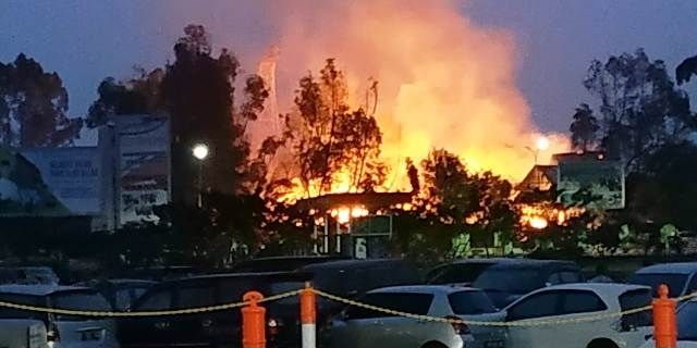 Berdasarkan foto yang diterima, kebakaran terlihat dari Bandara Sultan Thaha. Informasinya, ada bangunan di Eks MTQ yang terbakar.