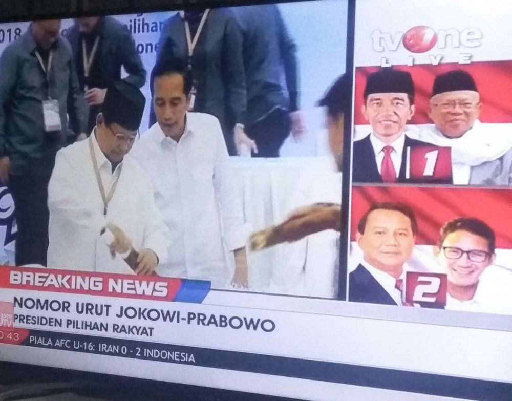 Hasilnya, pasangan Joko Widodo-Ma'ruf Amin mendapat nomor urut 1, sementara Prabowo Subianto-Sandiaga Uno mendapat nomor urut 2.