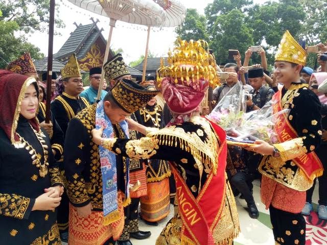 Prosesi acara adat itu berlangsung meriah di Pendopo rumah dinas Bupati Merangin. ‘’Sudah menjadi tradisi bagi Kabupaten Merangin, siapa pejabat yang baru bertugas disambut secara adat,’’ujar Bupati H Al Haris.