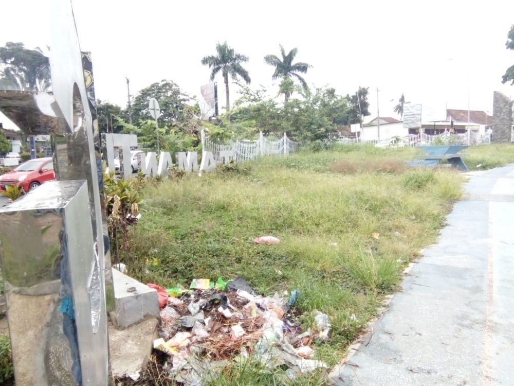 Sampah berserakan dan rumput belukar setinggi kaki orang dewasa. Padahal ini taman terbuka hijau yang diharapkan memiliki nilai dan kesan sejarah para pejuang dengan konsep yang tertata, mulai dari lahan parkir, teater, tempat untuk masyarakat seni, galeri, dan kuliner.