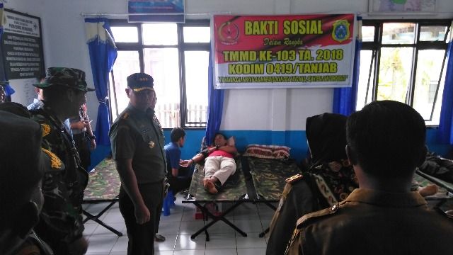 JAMBERITA.COM- Penutupan TNI Manunggal Membangun Desa (TMMD) Ke-103 di Mendahara diisi dengan berbagai kegiatan. Diantaranya, pengobatan gratis dan donor darah di Puskesmas kecamatan Mendahara Kabupaten Tanjung Jabung Timur (Tanjabtim).