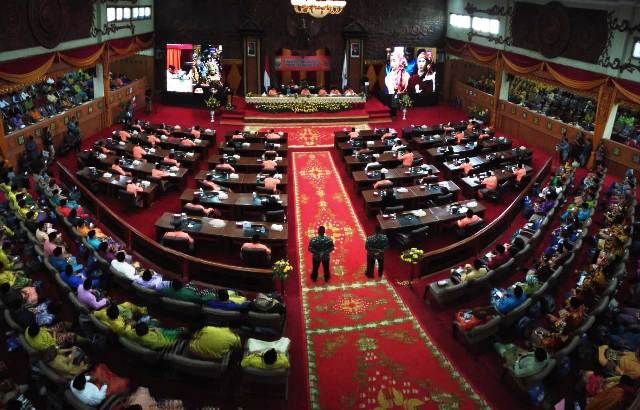 JAMBERITA.COM - Ketua DPRD Jambi Cornelis Buston (CB) memimpin sidang paripurna dalam rangka memperingati HUT Jambi ke 62 Tahun Provinsi Jambi, Senin (7/1/2019).