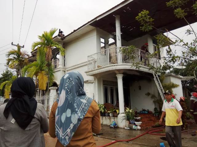 JAMBERITA.COM- Rumah dua lantai milik Kepala Dinas Pemberdayaan Perempuan dan Perlindungan Anak dan Pengendalian Penduduk (DP3AP2) Provinsi Jambi Dra Luthpiah. yang berada di Lorong Manunggal RT 20 Kelurahan Pematang sulur terbakar.