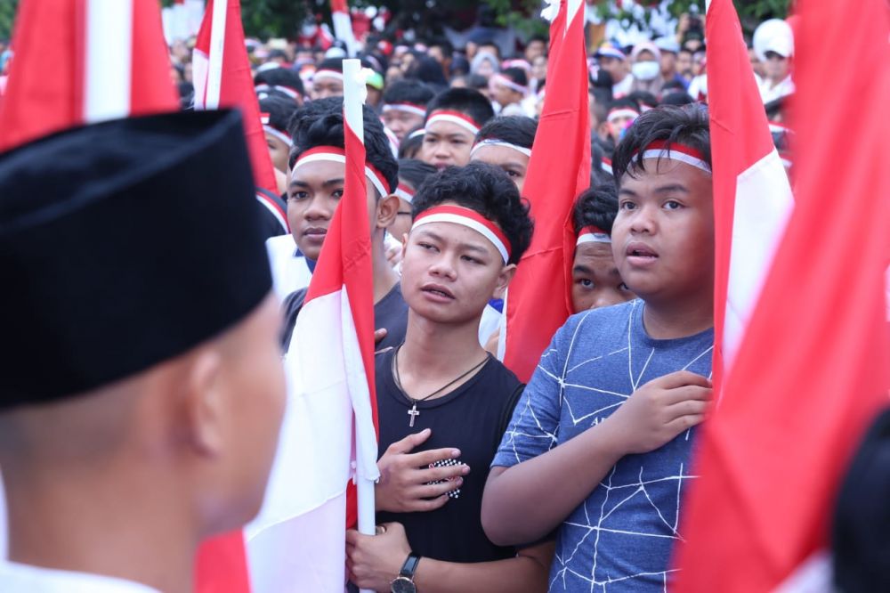 JAMBERITA.COM, PALANGKARAYA - Sekitar 50.000 Milenial Palangkaraya tumpah ruah di alun-alun Palangkaraya menghadiri acara Milenial road safety festival. Para anak muda ini ramai-ramai mendeklarasikan diri untuk tertib berlalu lintas.