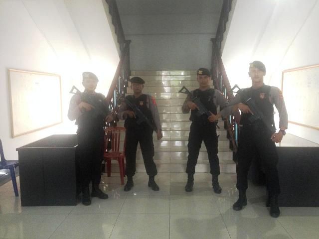 Dari pantauan sedikitnya 4 personil Yang menjaga tangga utama menuju lantai dua.(dy)