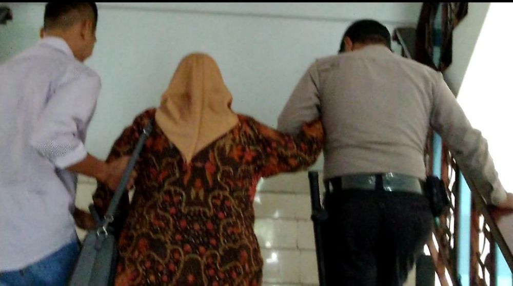 Sementara itu, Tartiniah terlihat kesulitan menaiki tangga menuju ruang pemeriksaan. Ia terpaksa dipapah petugas kepolisian dan kerabatnya.