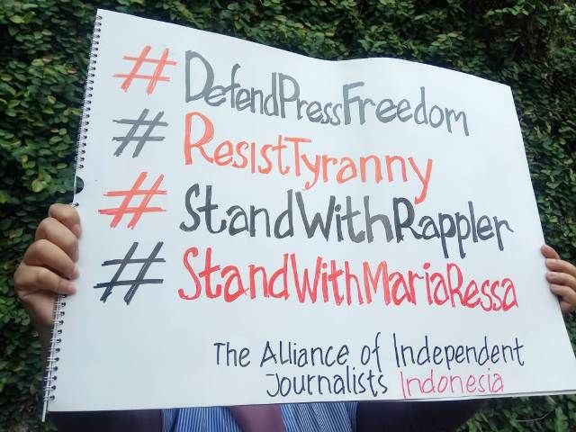 2. Menyampaikan solidaritas dan dukungan ke Maria Ressa, Rappler, dan rekan-rekan jurnalis yang tergabung dalam organisasi jurnalis the National Union of of the Philippines (NUJP).