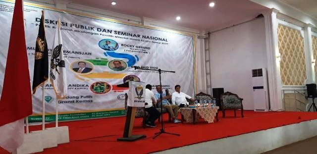 JAMBERITA.COM - Diskusi publik dan Seminar Nasional dengan tema politik rasional di kalangan pemilih milenial dalam pemilu damai 2019 yang digelar pagi ini Selasa (12/3/2019) di Gedung Putih tanpa kehadiran Rocky Gerung.