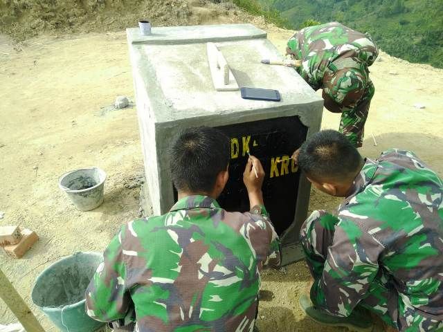 "Sudah selesai kita buat. Hanya menunggu pemasangan batu alam tanda tangan kasdam," jelas Serda Pordomuan anggota satgas TMMD.(TMMD 0417/Krc)