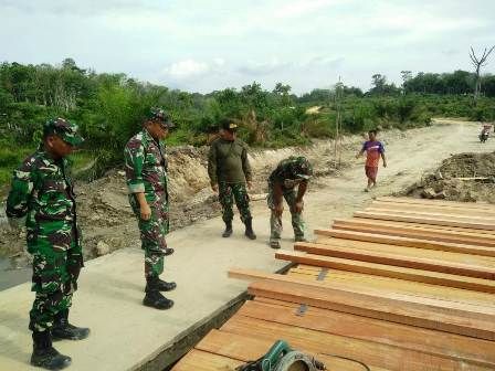 Menurut Kasdim, kondisi jembatan saat ini sudah mencapai angka 80 persen dengan rincian sudah terpasang tiang, belandar dan turapnya.