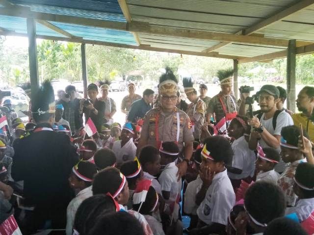 Anak – anak yang mengikuti kegiatan tersebut diberikan bendera merah putih yang sudah disiapkan oleh tim binmas nokejn, tak lupa setelah diberikan ya aksesoris tersebut, anak – anak di berikan pertanyaan oleh Asops Kapolri Irjen pol Martuani Sormin, yang mengatakan siapa disini yang bisa mengucapkan Pancasila, serta menanyakan cita – cita para anak – anak tersebut dan dilanjutkan dengan pembagian baju yang bertuliskan sa Papua sa Indonesia Setelah kegiatan berlangsung, tim dari asops Kapolri memberikan hadiah berupa Papan tulis dan sejumlah aksesoris tulis untuk anak – anak yang mengikuti kegiatan polisi pi ajar.