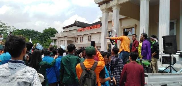 JAMBERITA.COM - Ratusan mahasiswa dan rakyat Jambi memanggil yang menggelar aksi di Gedung DPRD Provinsi Jambi Senin (30/9/2019).