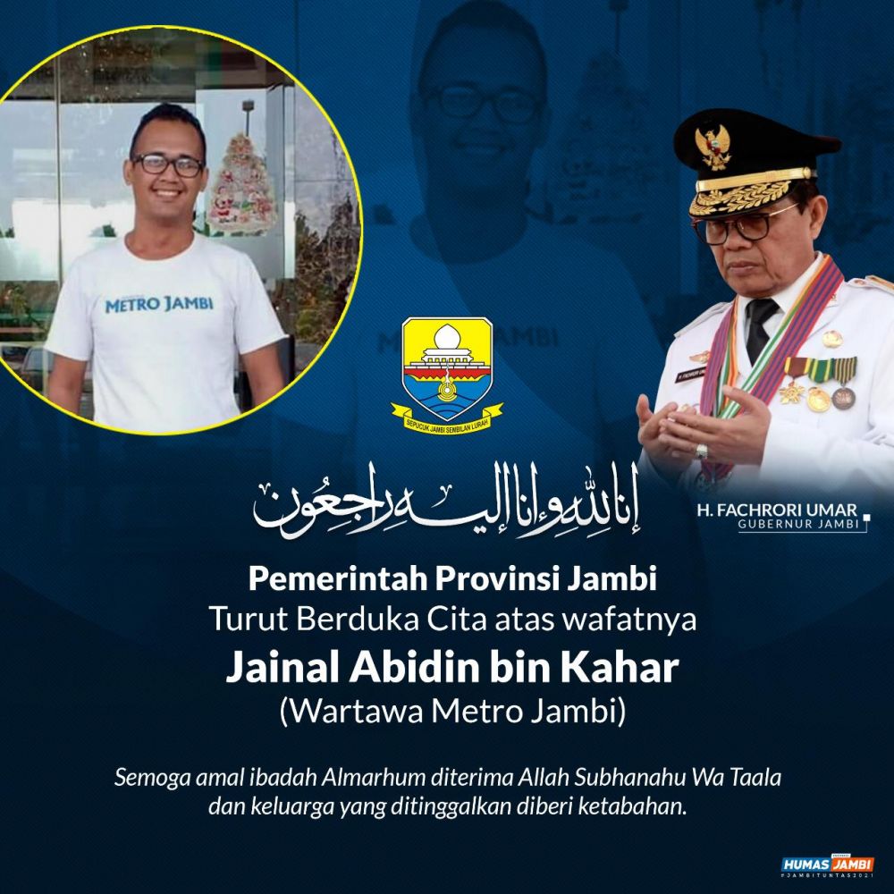JAMBERITA.COM- Gubernur Jambi Fachrori Umar turut menyampaikan duka yang mendalam atas wafatnya wartawan Harian Metro Jambi Zainal Abidin alias Jay, Minggu malam (20/10/2019).