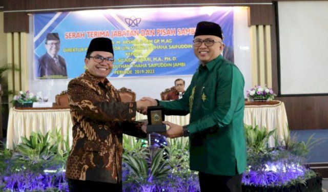 Serah terima jabatan Plt rektor UIN, Prof Dr M Arskal Salim GP, M.Ag ke Prof Suaidi dilakukan hari ini, Jumat (18/10/2019) di Aula Rektorat lantai 3 UIN STS Jambi.