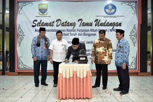 Dimana tanah dimaksud selama ini juga telah dimanfaatkan oleh Kementrian Pendidikan Republik Indonesia sebagai Kantor Lembaga Penjaminan Mutu Pendidikan Provinsi Jambi dan pemberian hibah ini pada dasarnya merupakan wujud pelaksanaan pembangunan dibidang pendidikan,"Kinerja aparatur Kementerian Pendidikan dan Kebudayaan yang profesional tidak terlepas dari dukungan regulasi, sumber daya manusia serta sarana dan prasarana yang memadai," ujar Gubernur Jambi.