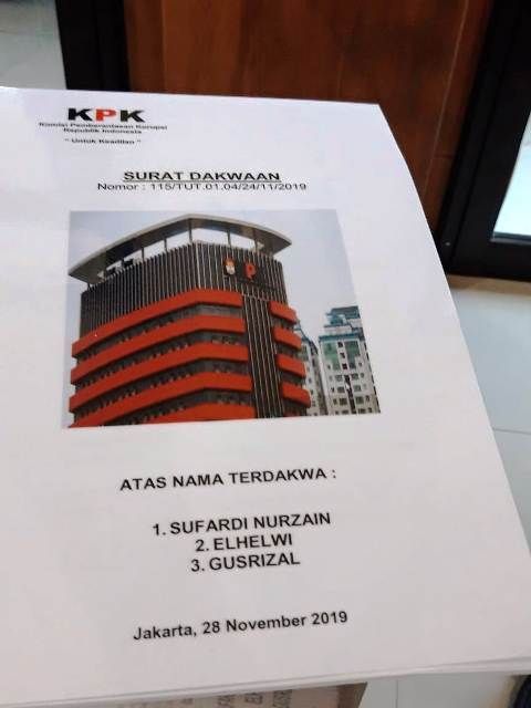 Ia pun memperlihatkan buku tebal bersisi surat dakwaan dengan No 115/TUT/01/04/24/11/2019