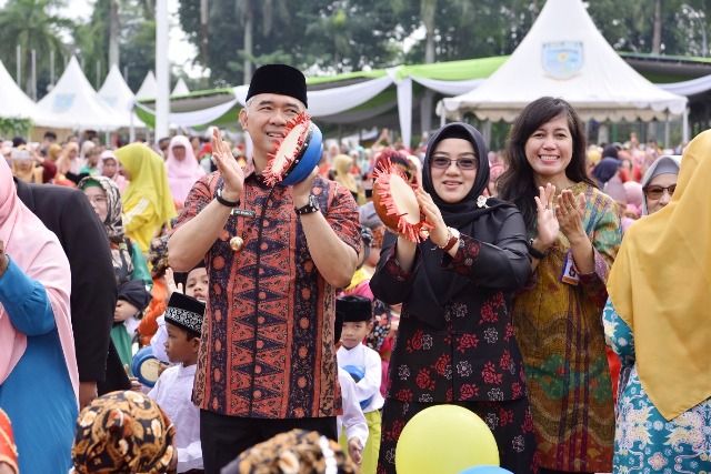JAMBERITA.COM, JAMBI - Rekor dunia kembali tercipta di Kota Jambi. Rekor itu lahir dari tangan mungil ribuan anak-anak siswa PAUD se-Kota Jambi. Anak-anak siswa PAUD Kota Jambi kembali mencatatkan prestasi fenomenal di tahun keenam, dengan mencetak rekor dunia, anak PAUD Penabuh Rebana Terbanyak.