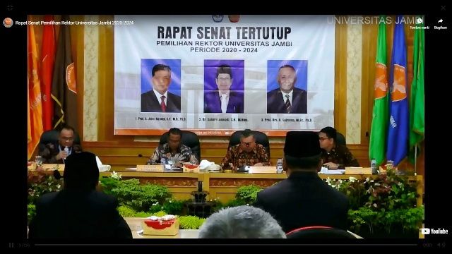 JAMBERITA.COM- Pemilihan rektor Unja dimulai. Prof Ami Amir memimpin sidnag senat yang akan memilih siapa rektor UNja periode 2020-2024. Yang menarik proses pemilihan dapat disaksikan dalam live youtube.