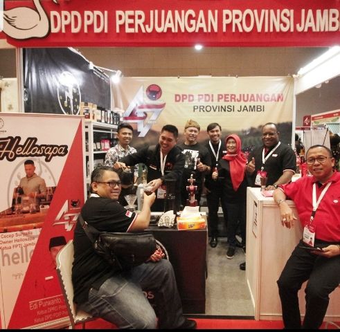 JAMBERITA.COM- Ketua Himpunan Pengusaha Muda Indonesia (HIPMI) Mardani Haji Maming terkejut saat mampir di Stand DPD PDI Perjuangan Jambi yang diisi Hellosapa dalam Rakernas PDI Perjuangan Sabtu (11/1/2020).
