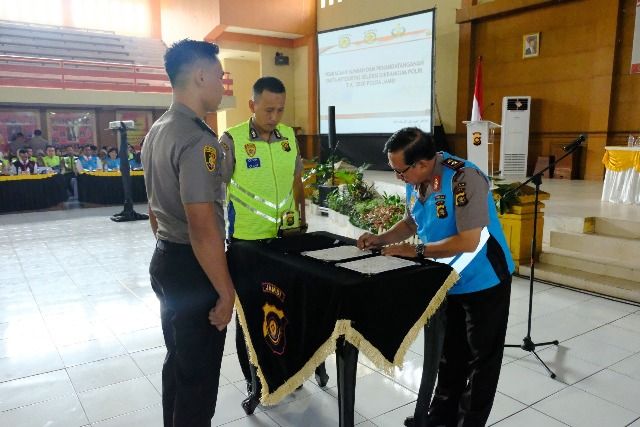 JAMBERITA.COM- Sebanyak 473 personil terdiri dari 14 peserta Sespimmen 3 peserta Sespimma, dan 456 peserta SIP menandatangani Pakta Integritas Senin (20/1/2020).
