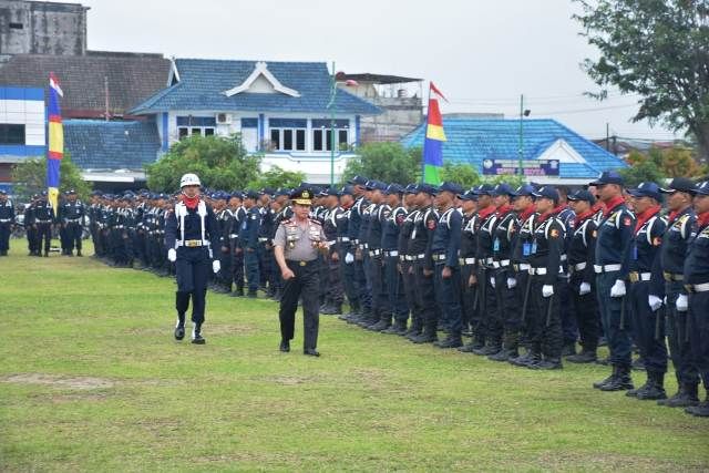 JAMBERITA.COM- Kapolda Jambi Irjen Pol Drs Muchlis,AS.MH menjadi Inspektur upacara Hari Ulang Tahun Satuan Pengamanan (Satpam) yang ke 39 tahun 2019 di lapangan Mapolresta Jambi, Rabu (22/1/2020).