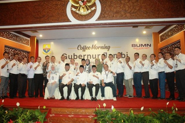 JAMBERITA.COM - Coffee Morning Gubernur Jambi bersama Forum BUMN mengusung semangat bersama BUMN Sinergi Membangun untuk Mewujudkan Jambi TUNTAS 2021 di Rumah Dinas Gubernur Jambi, Rabu (22/1/2020).