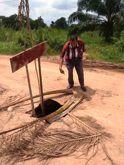 JAMBERITA.COM- Ruas jalan Simpang Pudak Suak Kandis Kabupaten Muaro Jambi yang amblas sampai dengan berlobang cukup dalam langsung ditangani Dinas Pekerjaan Umum dan Perumahan Rakyat (PUPR) Provinsi Jambi.