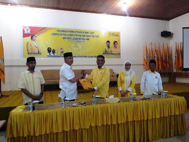 JAMBERITA.COM- Ketua DPD Harian DPD Golkar Provinsi Jambi Syarif Fasha mengembalikan formulir sebagai bakal calon Gubernur ke DPD Partai Golkar Provinsi Jambi sore ini Kamis (13/2/2020).