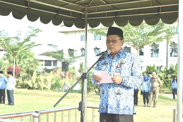 JAMBERITA.COM- Gubernur Jambi Dr.Drs.H.Fachrori Umar,M.Hum yang diwakili oleh Asisten Perekonomian dan Pembangunan (Asisten II) Setda Provinsi Jambi Ir.Agus Sunaryo memimpin upacara bendera dalam rangka meningkatkan disiplin ASN di lingkup pemerintah Provinsi Jambi, Senin (17/2) bertempat di lapangan depan kantor Gubernur. Dalam sambutan tertulisnya Gubernur menyatakan bahwa kedisiplinan tidak hanya dari segi pekerjaan, tapi juga dari kedisiplinan sehari-hari, salah satu bentuk kedisiplinannya yaitu ketaatan untuk membayar pajak.