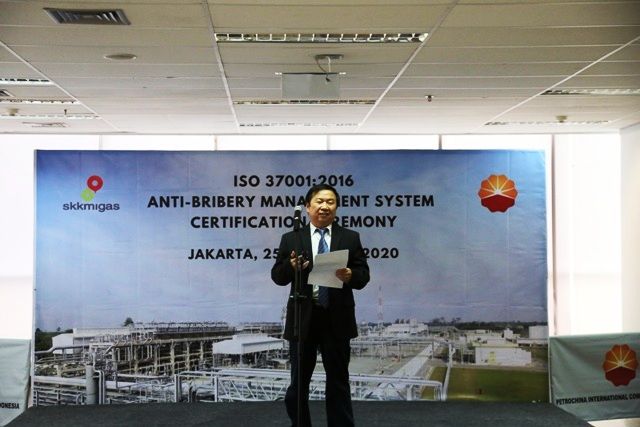 Sementara itu, Arifin menyampaikan bahwa sertifikasi ISO 37001:2016 adalah langkah nyata mencegah penyuapan dan kejahatan korporasi lainnya. “Langkah yang diambil pimpinan dan manajemen PetroChina Jabung patut diapresiasi dan diikuti oleh perusahaan lain. Indonesia, yang saat ini menjadi sorotan dunia sebagai tujuan investasi dan pengembangan usaha, terus berupaya membangun kepercayaan internasional. Hal ini menunjukkan bahwa Indonesia adalah negara yang serius memerangi korupsi maupun kejahatan korporasi lainnya,”ujarnya.