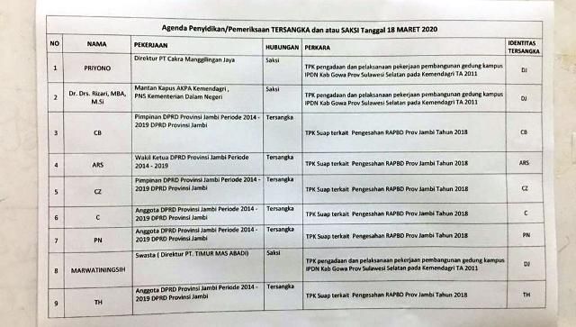 JAMBERITA.COM- Dalam daftar pemeriksaan (Riksa) yang dikeluarkan Komisi Pemberantasan Korupsi (KPK) tetap diperiksa hari ini Rabu (18/3/2020).