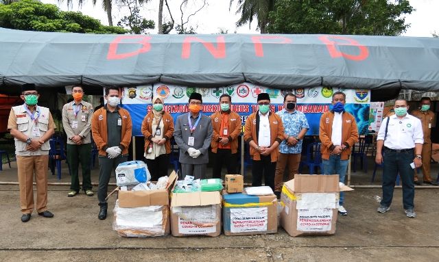 JAMBERITA.COM- Gubernur Jambi selaku Ketua Gugus Tugas Penanganan Covid-19 Provinsi Jambi, Dr.Drs.H.Fachrori Umar,M.Hum menerima bantuan perlengkapan medis untuk penanganan Covid-19 dari BUMN yang tergabung dalam Forum Sinergitas BUMN Provinsi Jambi, di Posko Gugus Tugas Penanganan Covid-19 Provinsi Jambi, halaman kantor BPBD Provinsi Jambi, Selasa (7/4). Secara simbolis, bantuan diserahkan oleh Kepala Bulog Divre Jambi Bachtiar,AS dan GM PT Telkom Jambi,M.Zaidan Jauhari.