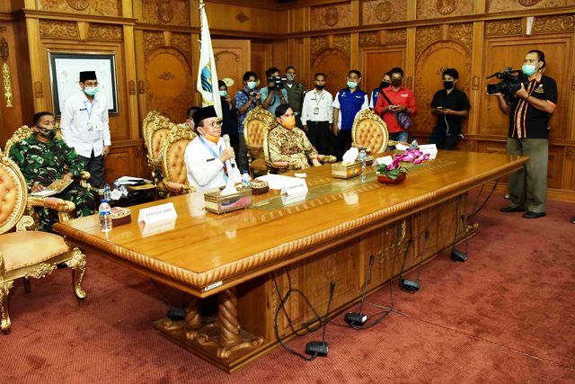 JAMBERITA.COM-- Gubernur Jambi Dr.Drs.H.Fachrori Umar,M.Hum, saat rapat online bersama Kepada BNPB Doni Monardo melaporkan kondisi perkembangan penanganan dan pencegahan Covid-19 di Provinsi Jambi, Rabu (22/4/20).