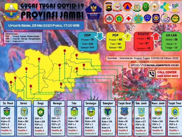 Update 25 Mei 2020, Positif Covid-19 Bertambah 2 Orang Lagi, Total Sudah 97 Kasus di Provinsi Jambi