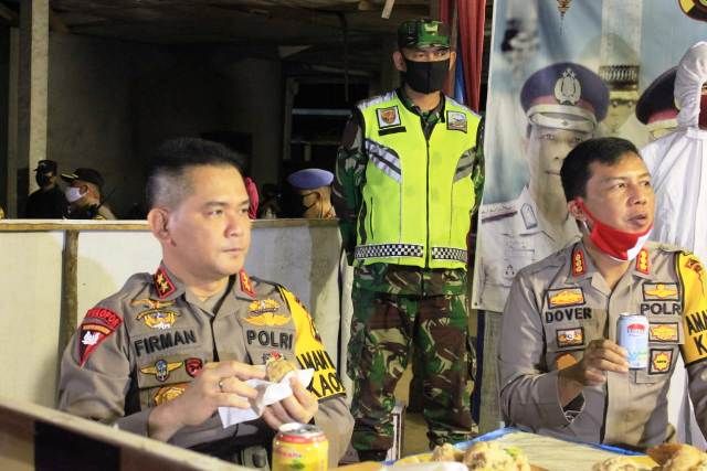 JAMBERITA.COM - Kapolda Jambi Irjen Pol Drs Firman Shantyabudi bersama rombongan menyambangi para petugas di Pos Pam Ops Singinjai dalam rangka Pencegahan Penyebaran Covid-19 di Pall X Kecamatan Kota Baru Kamis malam (29/5/2020).