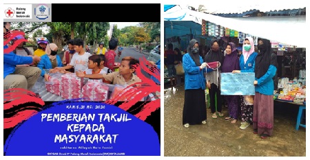Pembagian takjil di kota Jambi dan pembagian masker gratis di desa Pematang Rahim.