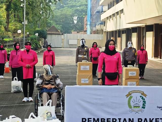 JAMBERITA.COM, JAKARTA- Ketua Umum Bhayangkari Fitri Idham Azis yang tergabung dalam Organisasi Aksi Solidaritas Era Kabinet Indonesia Maju (OASE KIM) memberikan bantuan kemanusiaan ramah perempuan dan anak kepada masyarakat khususnya kaum difabel dan kelompok rentan seperti ibu hamil.