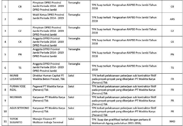 Ini berdasarkan daftar pemeriksaan yang kami terima dari rilis KPK pagi ini.