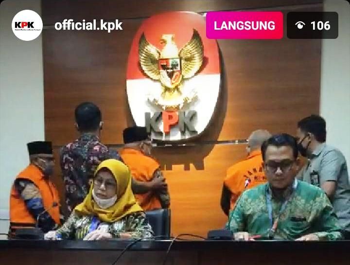 Tiga tersangka sendiri langsung mengenakan rompi orange. Saat ini konferensi pers sedang berlangsung dan disiarkan langsung dari akun resmi KPK RI.