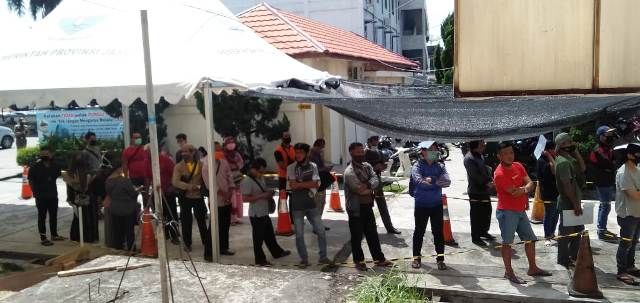 JAMBERITA.COM - Pengunjung di hari terakhir pemutihan pajak kendaraan yang diselenggarakan Pemerintah Provinsi (Pemprov) Jambi di Samsat Kota Jambi cukup padat, Selasa (30/6/2020).