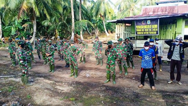 Tepat pada pukul 07.00 wib apel pagi diambil Pelda Umar Hasan yang bertujuan untuk pengeceken anggota yang tergabung dalam Satgas TMMD untuk pengerjaan Rehab Masjid At-Taqwa bertempat di RT. 03 Parit 4 Dusun 2 Desa Labuhan Pring.