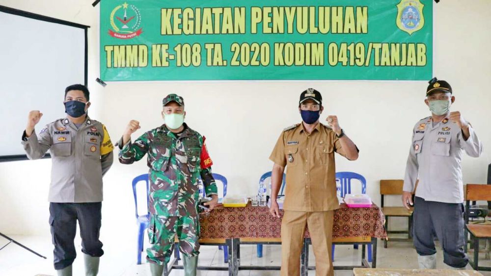 JAMBERITA.COM- Satgas TMMD 108 Kodim 0419/Tanjab Tahun 2020 melaksanakan kegiatan sosialisasi penanganan Karhutla di Wilayah Tanjab Timur, khususnya di Desa Labuhan Pering.