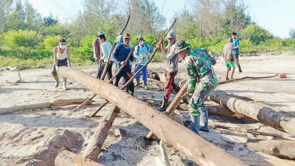 Menurut Pasiter Satgas Kapten Inf Safri Napitupulu kegiatan ini dilakukan sebagai bagian dari langkah untuk mengamankan bahan material yang terbawa air pasang kemarin.